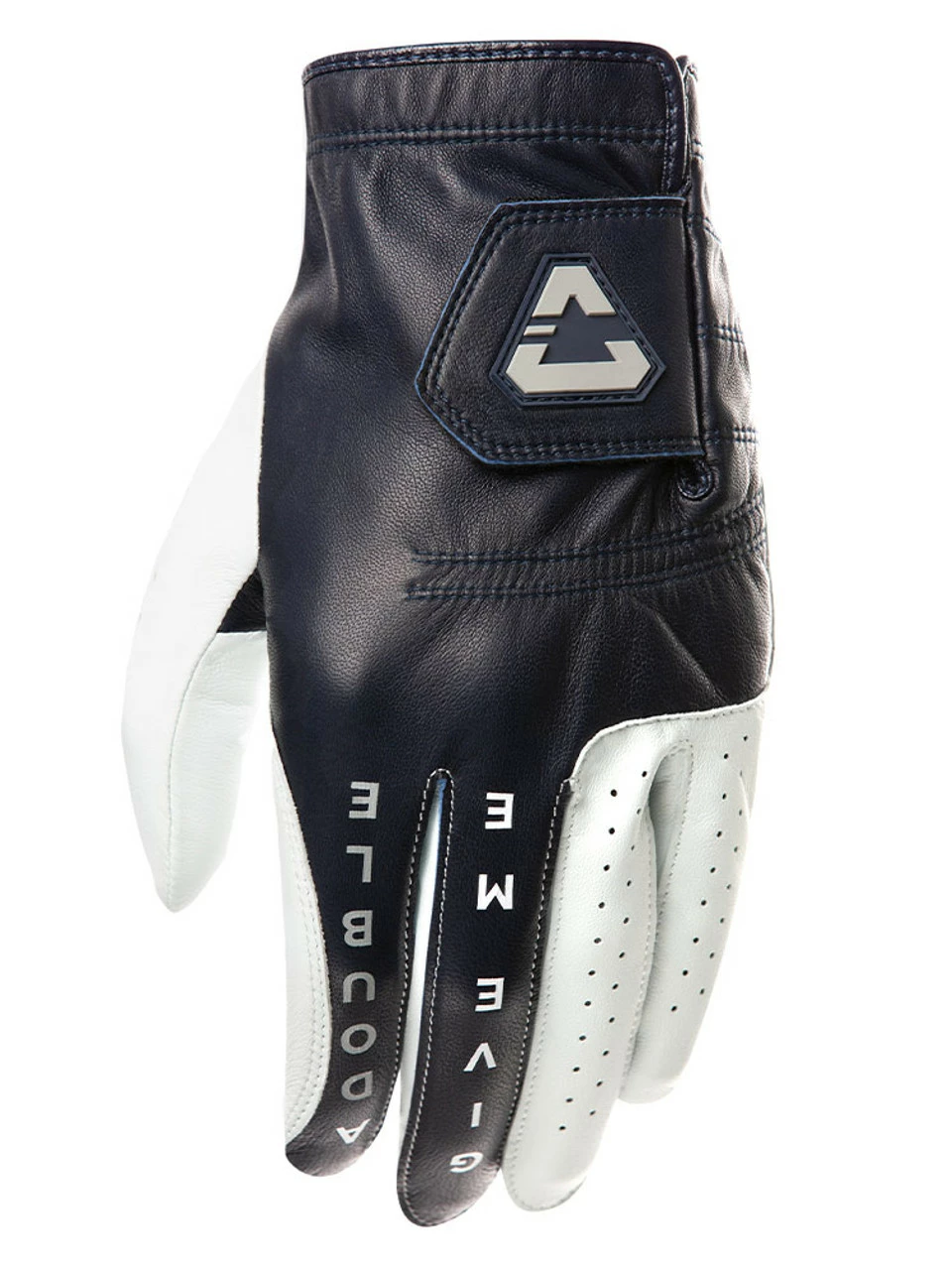 Buy Cuater Double Me Glove – Blue Nights online at GolfBox. Premium cabretta leather men’s golf glove. “Give me a double” written across index and middle finger; Grip location reminder to help your game and keep things lined up. Lightweight and flexible. Breathable perforation for moisture reduction. Adjustable tab closure allows a customised fit